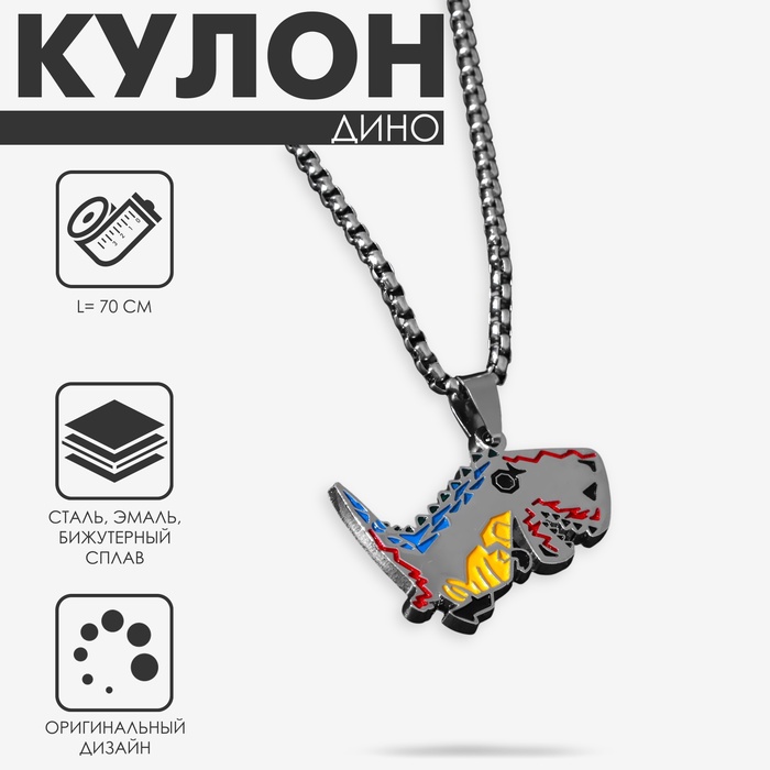 Кулон на цепочке «Дино», тиранозавр, цветной в чернёном серебре, 70 см
