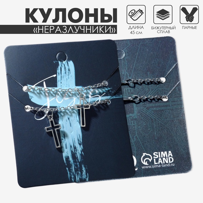 Кулоны парные «Кресты полые», 45 см, цвет серебро
