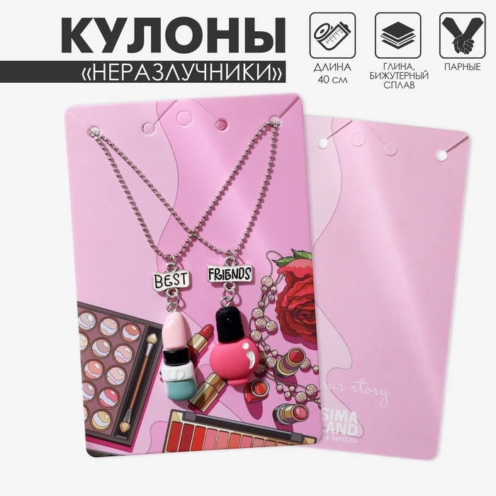 Кулоны парные «Лак и помада», 40 см, цветные в серебре
