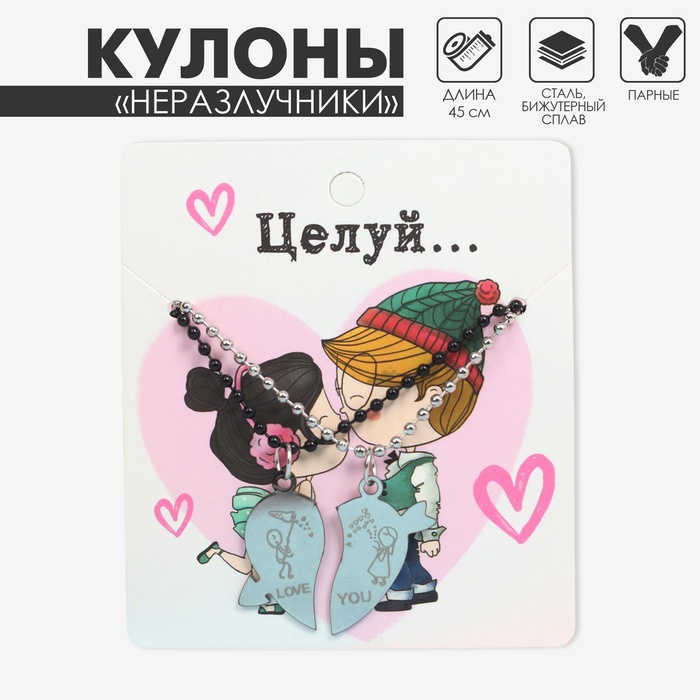 Кулоны парные на цепочке «Неразлучники», стальные, love you, цвет чёрно-серебряный, 45 см