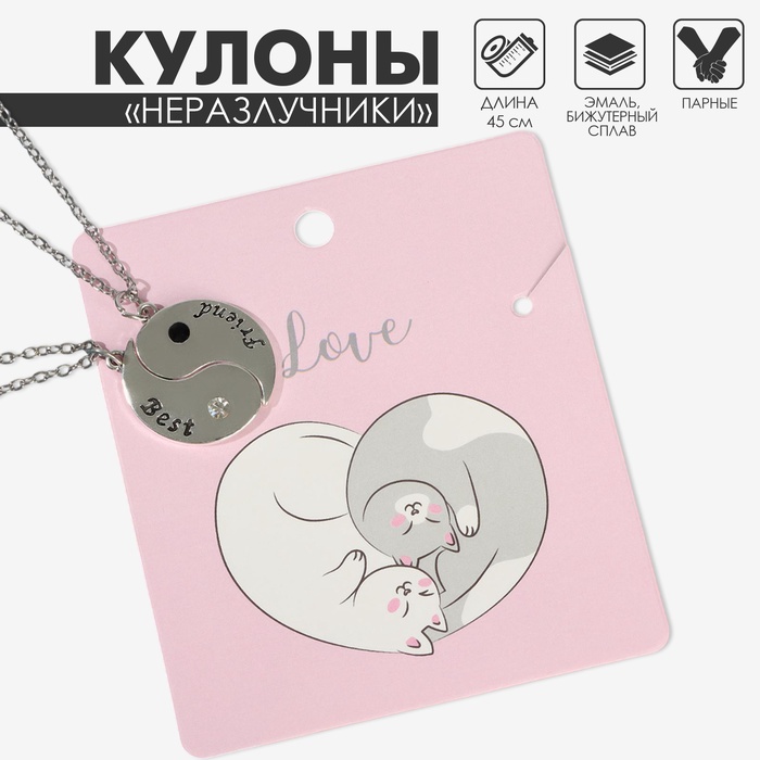 Кулоны парные на цепочке «Инь ян», со стразами, 45 см, цвет серебро