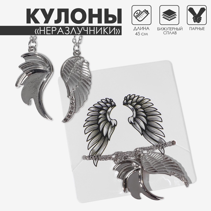 Кулоны парные на цепочке «Два крыла», 45 см, цвет серебро