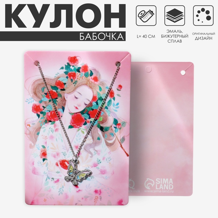 Кулон на цепочке «Бабочка», ассоль, цветной в серебре, 40 см
