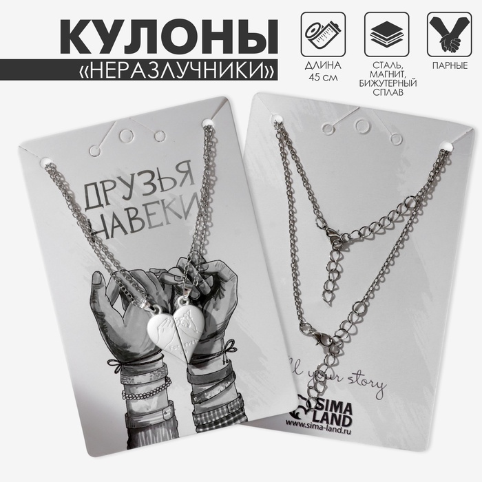 Кулоны парные на цепочке на магните «Мир», 45 см, белые в серебре