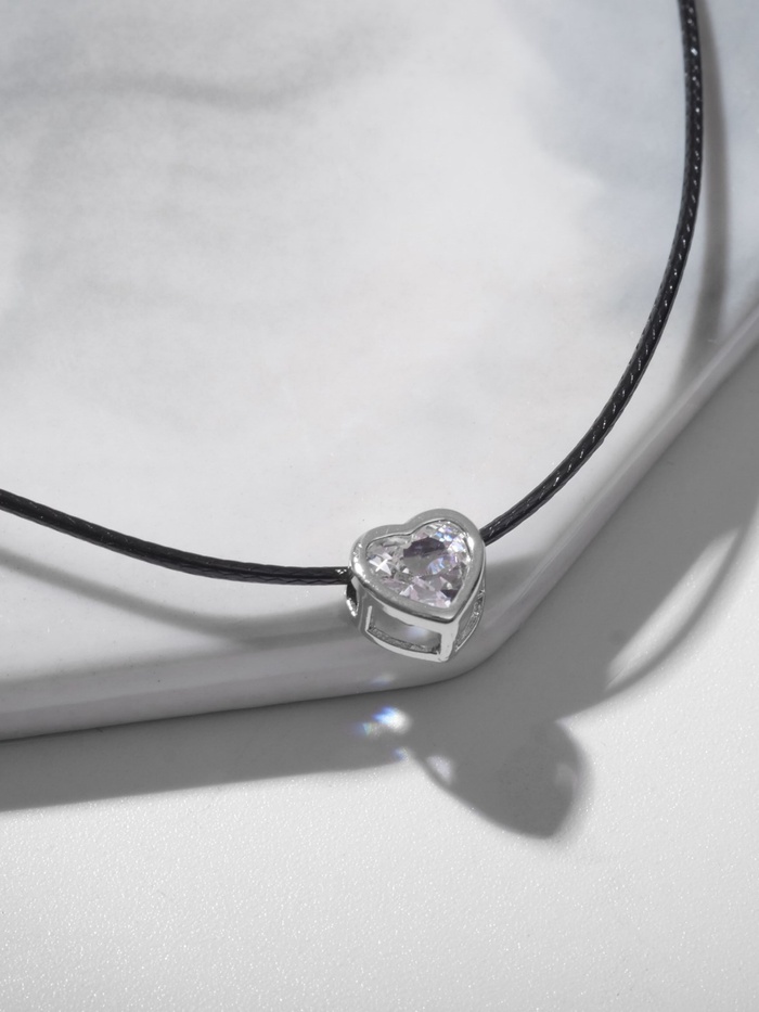Кулон на шнурке «Чёрная ночь», сердечко в обрамлении, белый в серебре на чёрном шнурке, 35 см