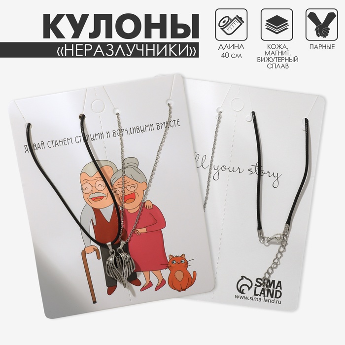 Кулоны неразлучники «Держи меня крепче», длина 50 см