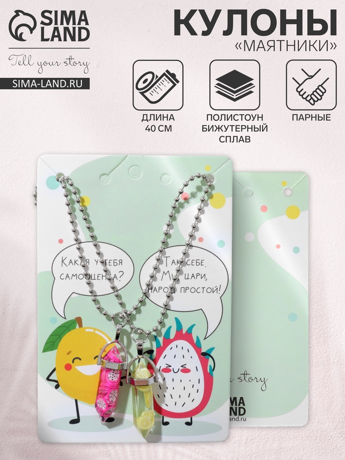 Кулоны парные «Маятники», 40 см, цветные в серебре