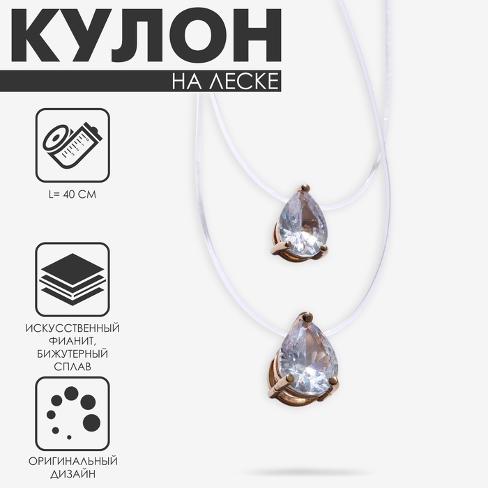Кулон на леске «Двойная слеза», белый в золоте, 40 см