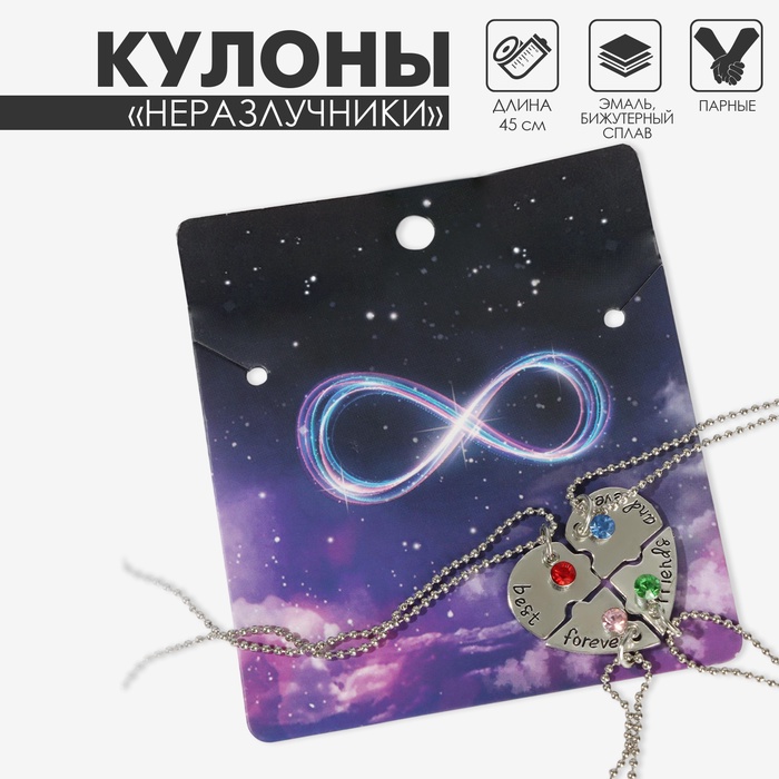 Кулоны парные «Фантастическая четвёрка», 45 см, цветные в серебре
