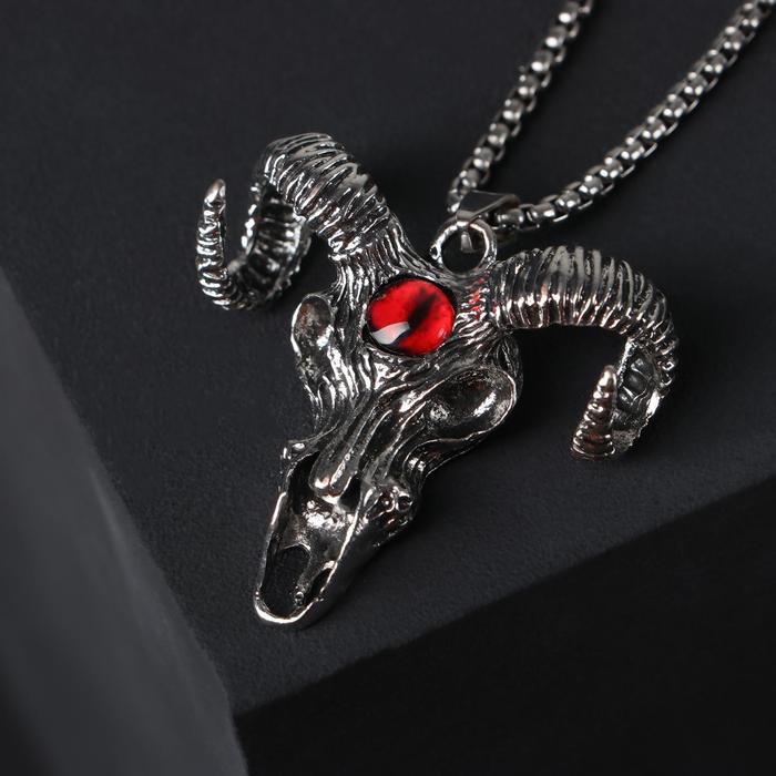 Кулон на цепочке-амулет «Помпеи», рога, красный в чернёном серебре, 70 см