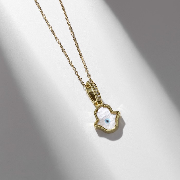 Кулон на цепочке оберег «Мини», рука хамса, бело-голубой в серебре, 38 см