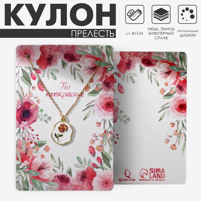 Кулон на цепочке «Прелесть», роза, цветной красно-белый в золоте, 40 см