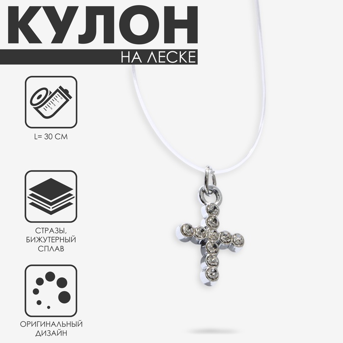 Кулон «На леске» крестик мини, цвет белый в серебре, 30 см