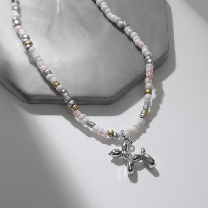 Кулон «Собачка» из воздушных шаров, бисер, цвет серебро, 41см