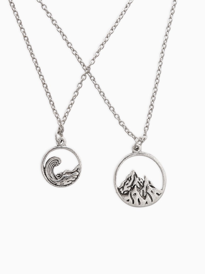 Кулоны парные «Горы и море», 45 см, цвет чернёное серебро