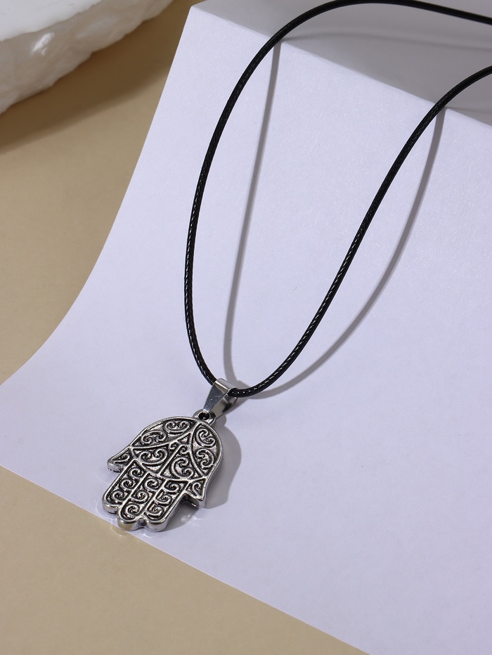 Кулон на шнурке «Рука Хамса» оберег, цвет чернёное серебро на чёрном шнурке, 40 см