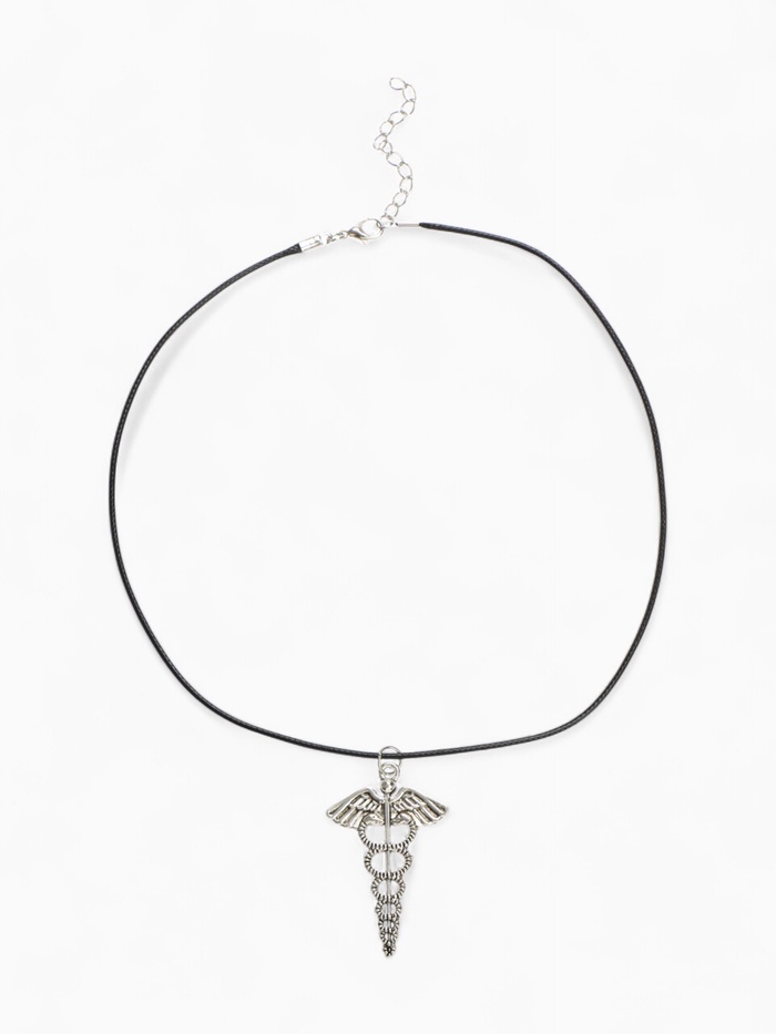 Кулон на шнурке «Кадуцей», цвет чернёное серебро, 40 см