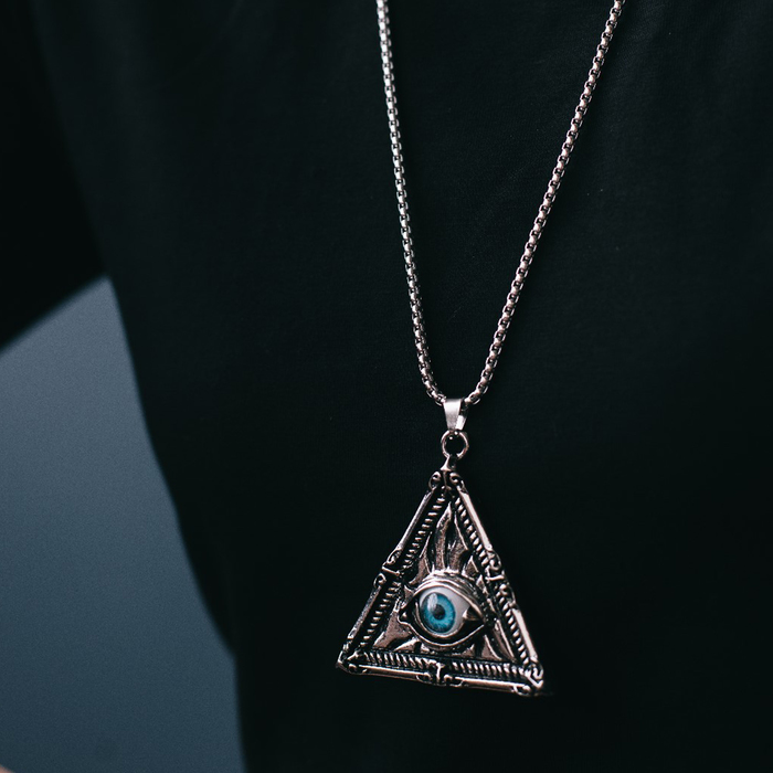 Кулон амулет на цепочке «Всевидящее око», голубой в чернёном серебре, 70 см