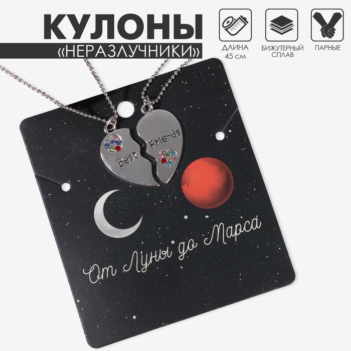 Кулоны «Неразлучники» best friends, сердце, цвет красно-синий в серебре, 45 см