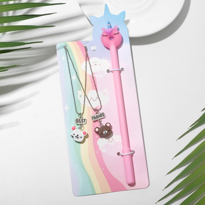 Набор «Мишки», 3 предмета: парные кулоны на цепочкеа, ручка, цветной, 44 см