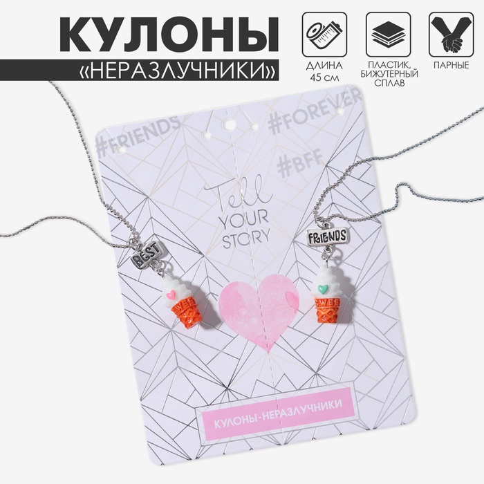 Кулоны «Неразлучники» мороженое, цветные в серебре, 45 см