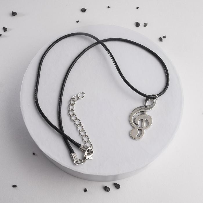 Кулон на шнурке «Скрипичный ключ», цвет серебро на чёрном шнурке, 42 см
