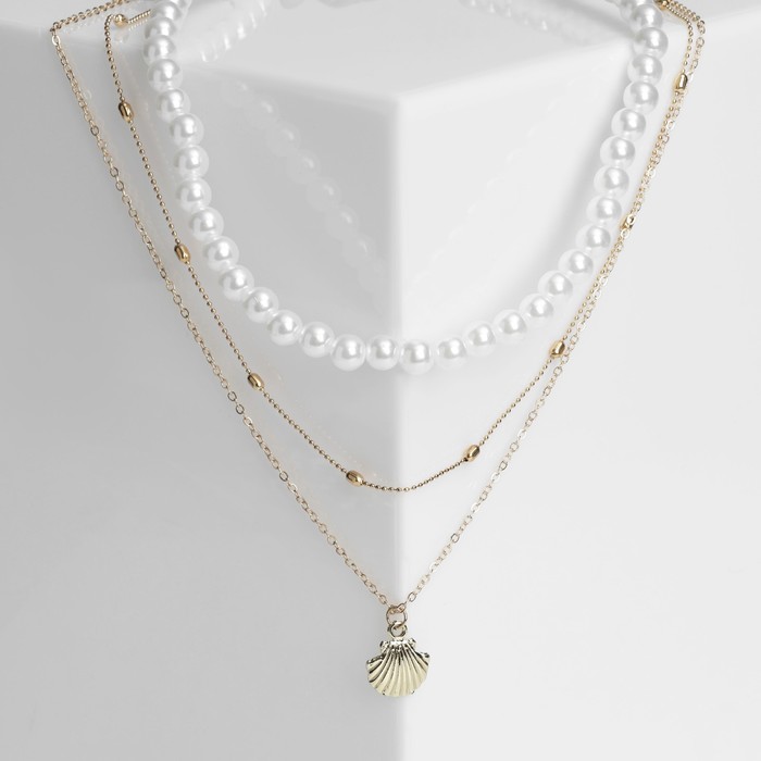 Кулон «Жемчуг» три яруса, шар № 6, цвет белый в золоте, L= 60 см