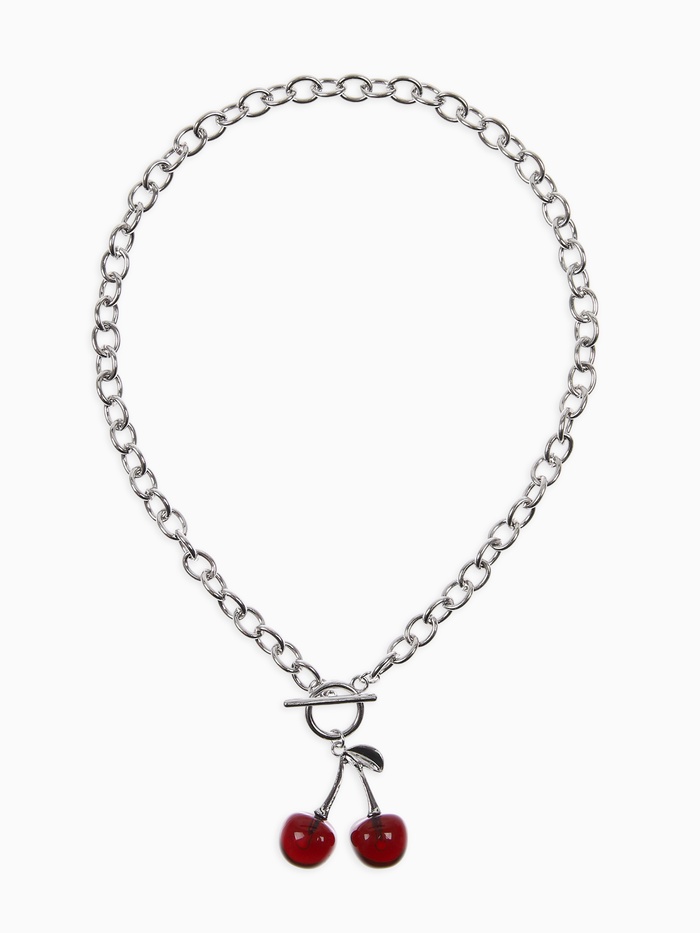 Кулон-цепь крупная "Вишня", цвет красный в серебре 40+удл