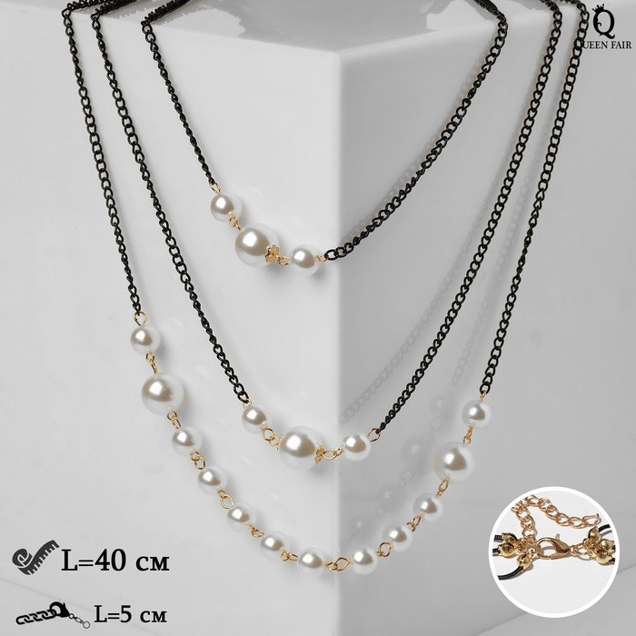 Кулон «Цепь» жемчужная нить, амулет, цвет белый в золоте, 45 см