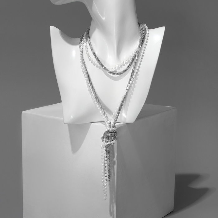 Бусы «Трансформер» 2 нити (несколько способов носки), жемчужные, цвет бело-серебряный, 118 см