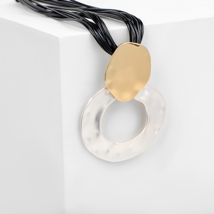 Кулон на шнурке «Соединение» круг и кольцо, цвет чернёное золото, 50см
