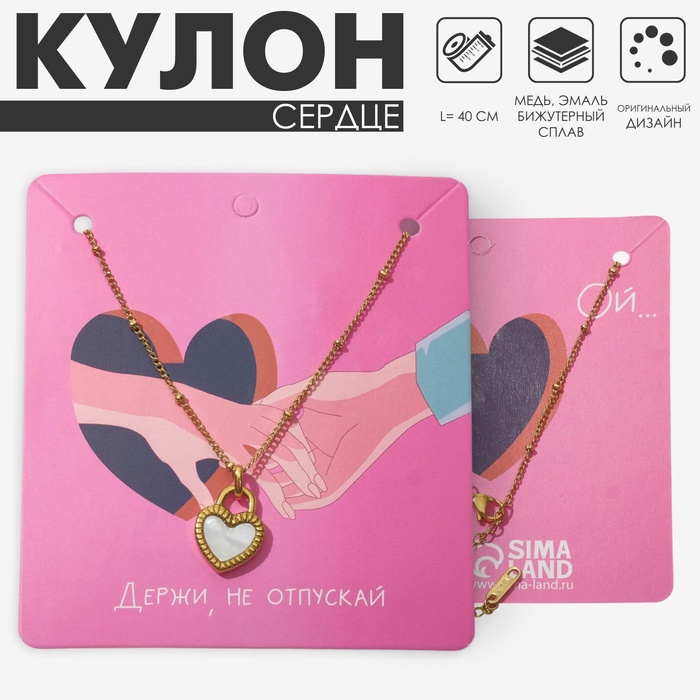 Кулон «Цепь» сердечко на булавке, цвет золото, 50 см