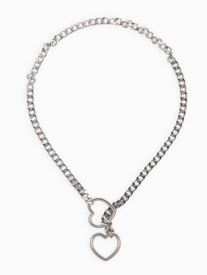 Цепочка на шею два сердца, затяжка, цвет серебро