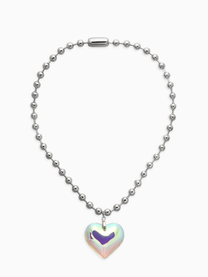 Кулон «Сердце» большое, цветное в серебре, 40 см