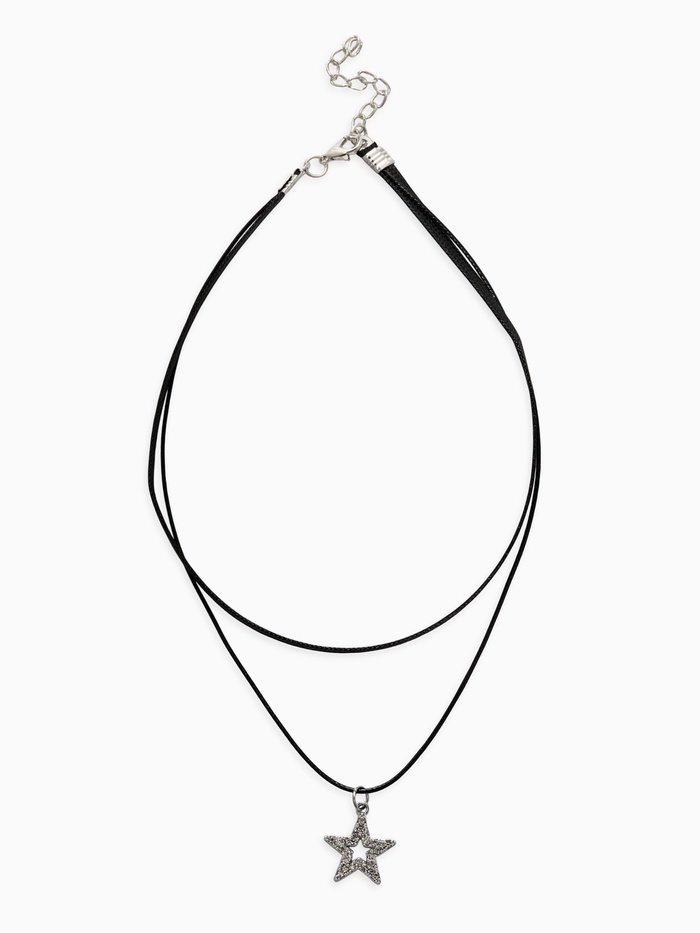 Чокер «Двойной» с нитью, звезда, цвет бело-чёрный в серебре, L=40 см