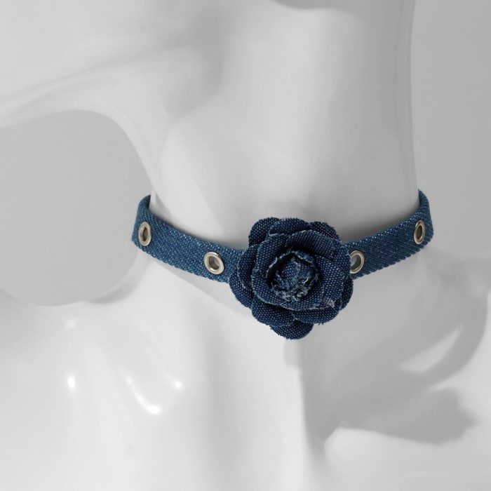 Чокер «Джинс» цветок малый, цвет синий, 36 см