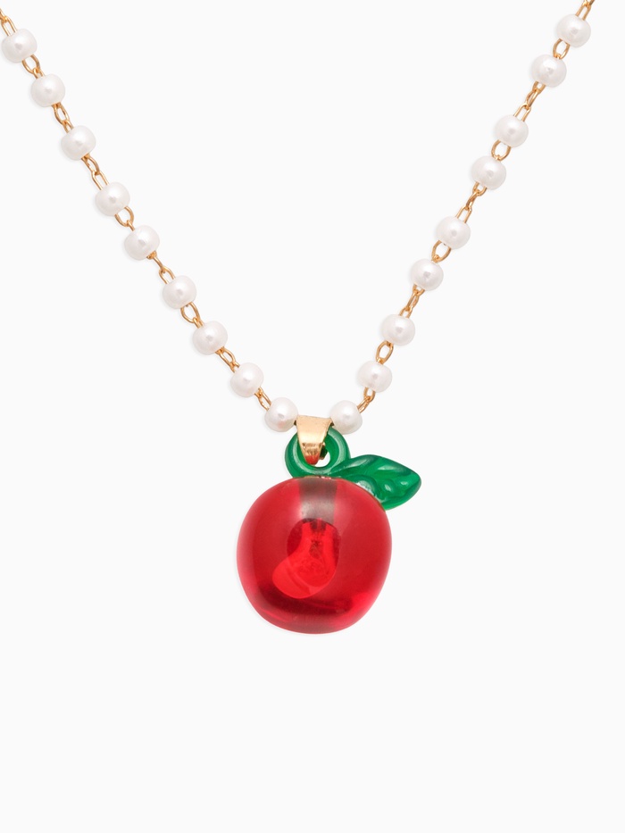 Кулон на жемчужной дорожке «Яблочко», 44 см, бело-красный в золоте