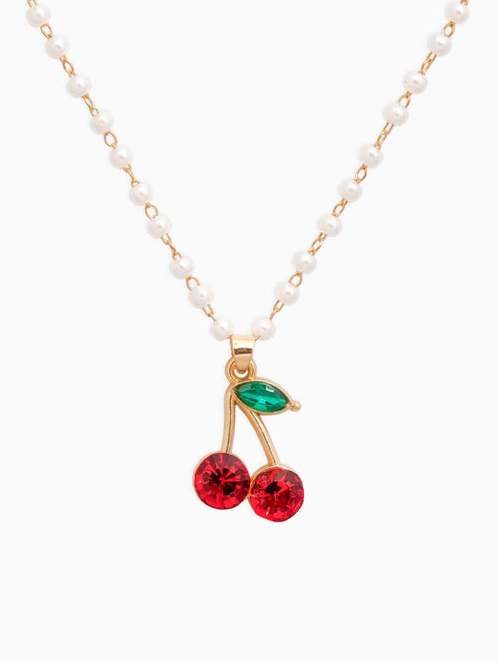 Кулон на жемчужной дорожке «Вишенка», 44 см, бело-красный в золоте