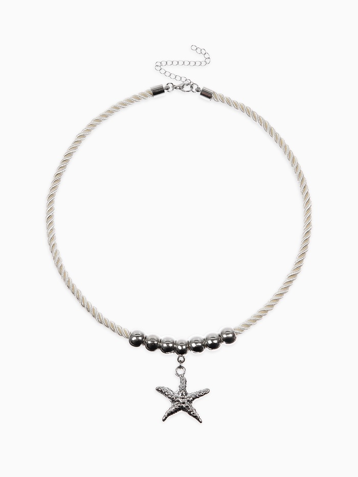 Кулон на жгуте текстильном "Морская звезда", цвет бело-серебристый