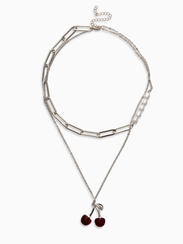 Кулон на цепочке 2 яруса «Вишня», 40 и 50 см, бордовый в серебре