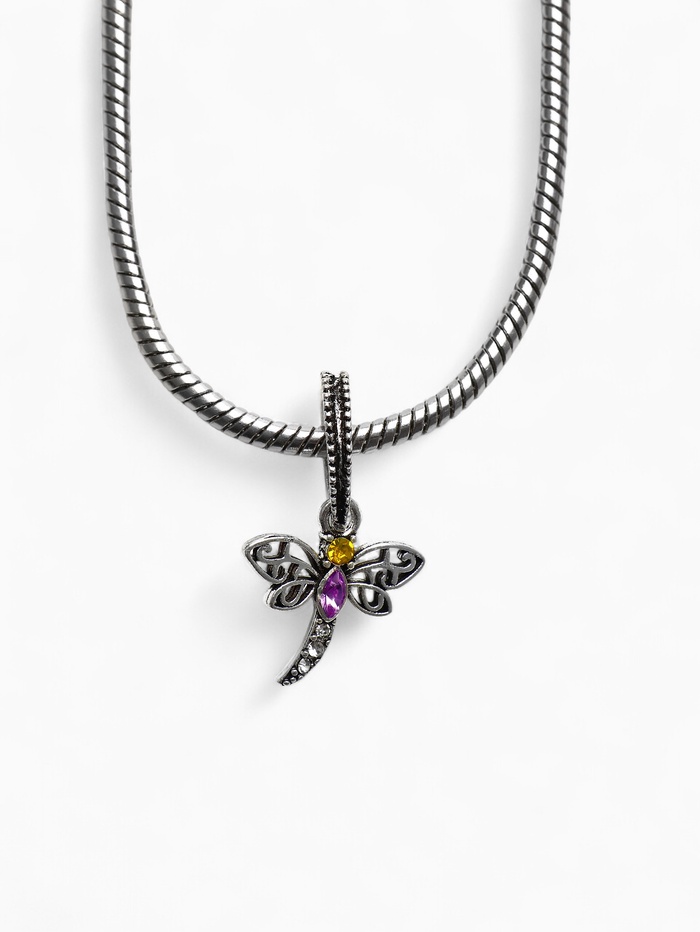 Подвеска «Стрекоза с ажурными крылышками», цвет жёлто-фиолетовый в серебре