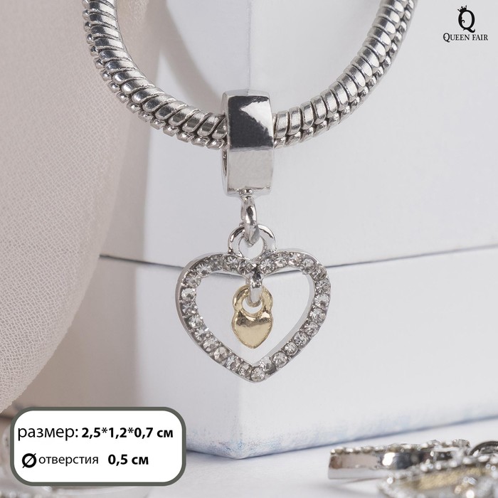 Подвеска «Сердце в сердце», цвет бело-золотой в серебре
