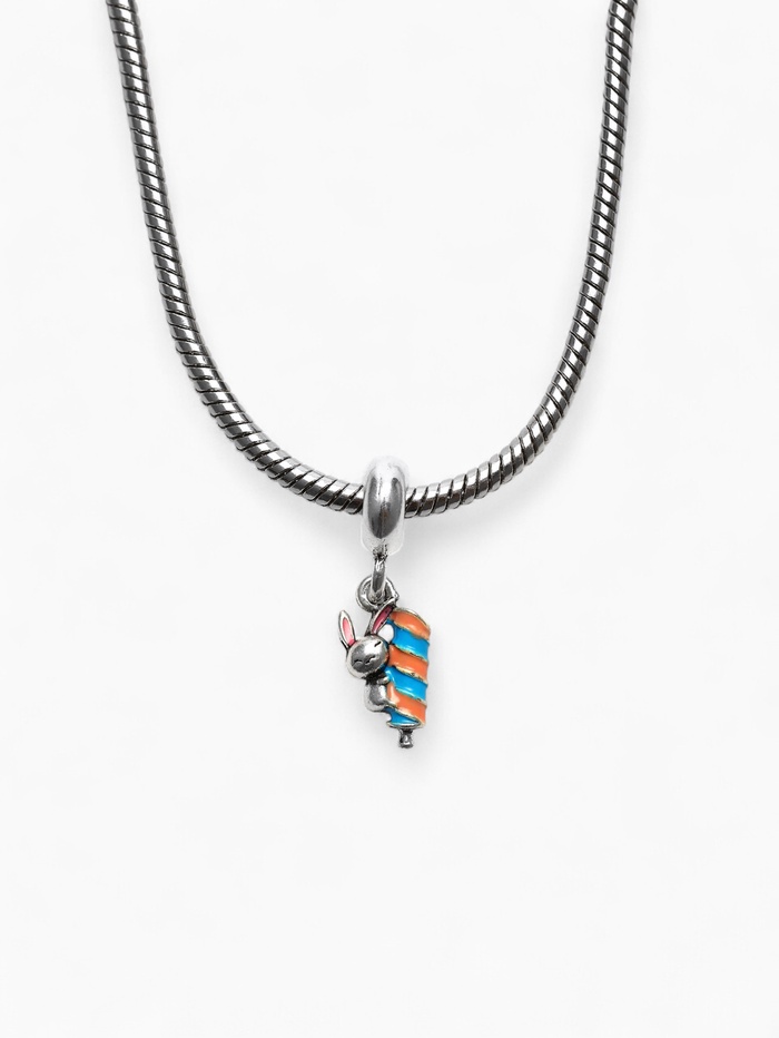 Подвеска «Заяц» с мороженым, цвет сине-оранжевый в серебре