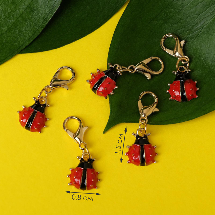 Шарм для браслета на карабине «Божья коровка», красно-чёрный в золоте