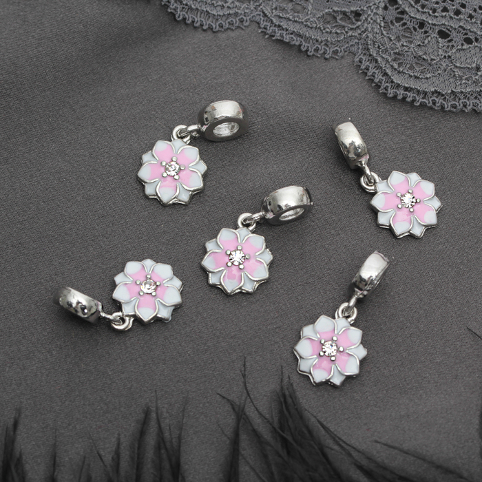 Подвеска «Цветок с эмалью», бело-розовая в серебре