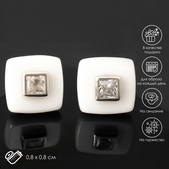 Пусеты керамика «Квадрат» малый, белые в серебре