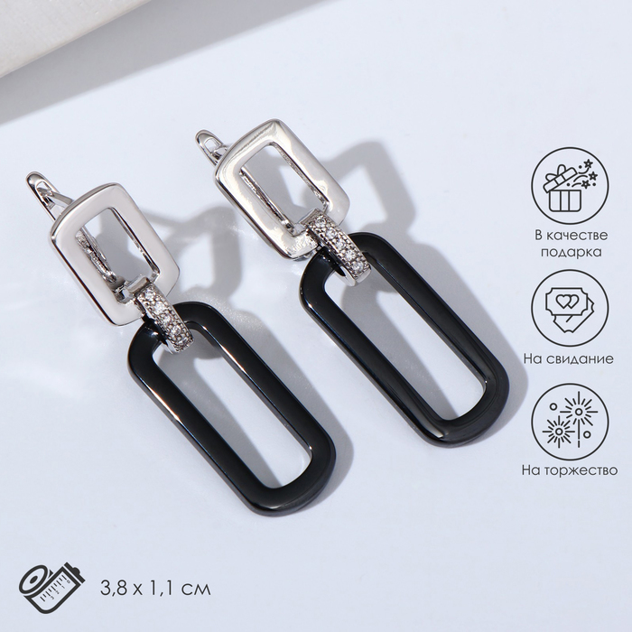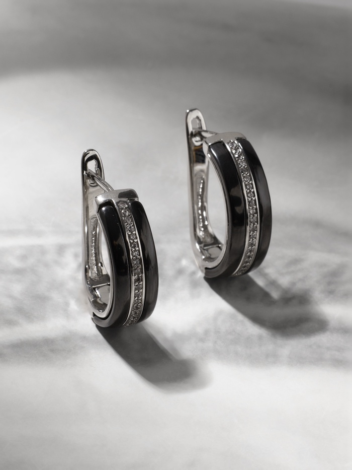 Серьги керамика «Овал» звено, чёрные в серебре