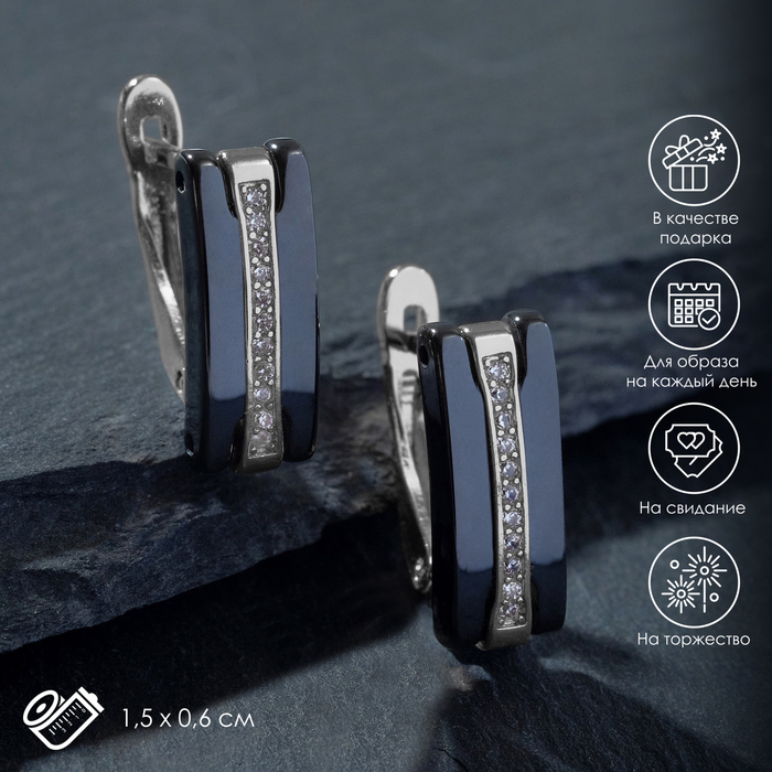Серьги керамика «Дорожка» прямая, чёрные в серебре