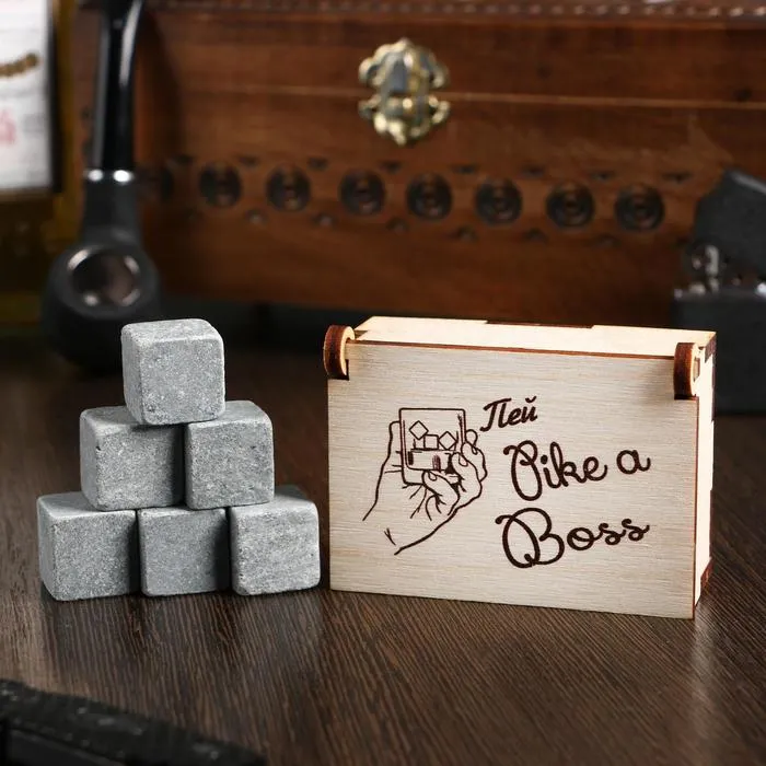 Камни для виски «Пей like a boss», в шкатулке, натуральный стеатит, 6 шт.
