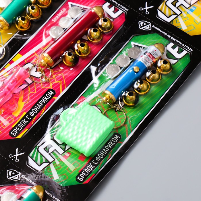 Фонарик брелок для ключей на кольце «Идилия», лазер 5 насадок, свисток, 16.5×6.5×1 см, МИКС